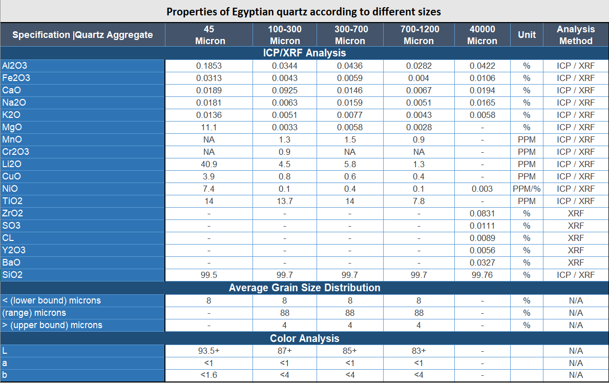 Quartz Exporting Company also provides quartz for other uses, like metallurgy, abrasives, and water filtration. We make sure our Egyptian quartz specifications for foundries meet the specific needs of these demanding processes.